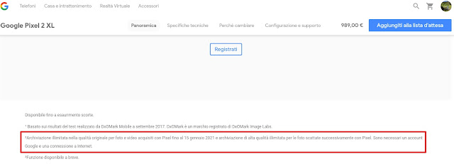 Con Google Pixel 2 XL per tre anni potrete salvare su Google Foto i vostri video e le vostre foto con la qualità originale. Dal 2022 in poi i video verranno salvati in alta qualità ma i "vecchi" backup rimarranno a grandezza originale.